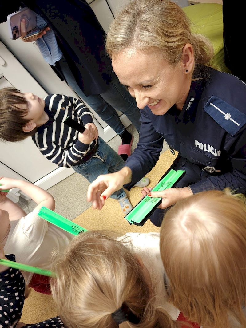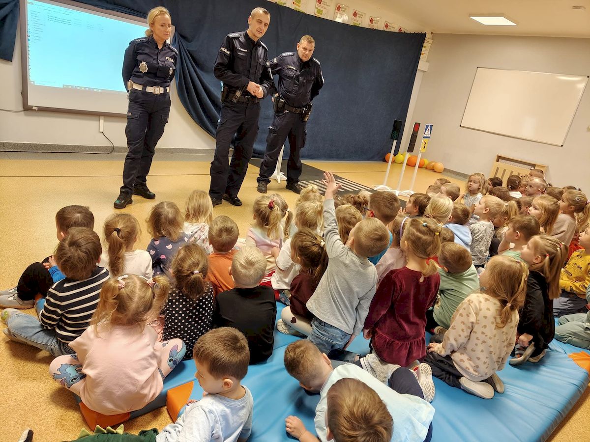 Podczas spotkania funkcjonariusze przypomnieli najmłodszym uczestnikom ruchu drogowego podstawowe zasady bezpieczeństwa obowiązujące na drodze: prawidłowe przechodzenie przez jezdnię, korzystanie z przejść dla pieszych, stosowanie się do sygnalizacji świetlnej i znaczenie noszenia elementów odblaskowych.