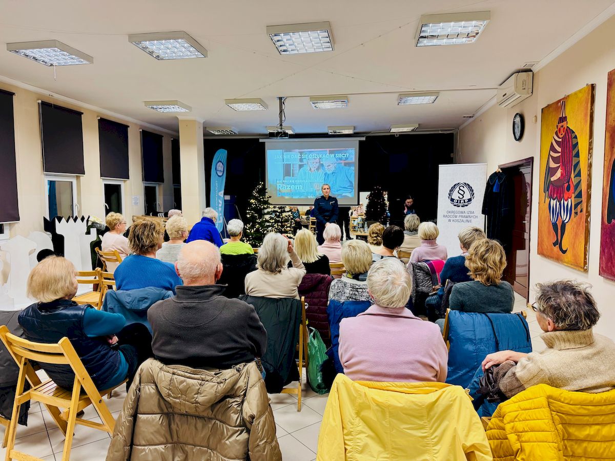 Policjanci z Komendy Miejskiej Policji w Słupsku przyjęli wczoraj zgłoszenie dotyczące oszustwa metodą „na kredyt”, którego ofiarą padła 74-letnia słupszczanka. Kobieta, działając w przeświadczeniu, że chroni swoje finanse przed rzekomymi przestępcami, została nakłoniona do zaciągnięcia szeregu pożyczek oraz przekazania wszystkich oszczędności. Łączna wysokość strat wyniosła niemal 500 tysięcy złotych. Mundurowi stale prowadzą działania profilaktyczne dotyczące sposobów działania oszustów i zagrożeń w cyberprzestrzeni. Jedno z takich spotkań odbyło się wczoraj w Spółdzielczym Domu Kultury „Emka”, a funkcjonariusze połączyli siły z przedstawicielami Okręgowej Izby Radców Pranych w Koszalinie.