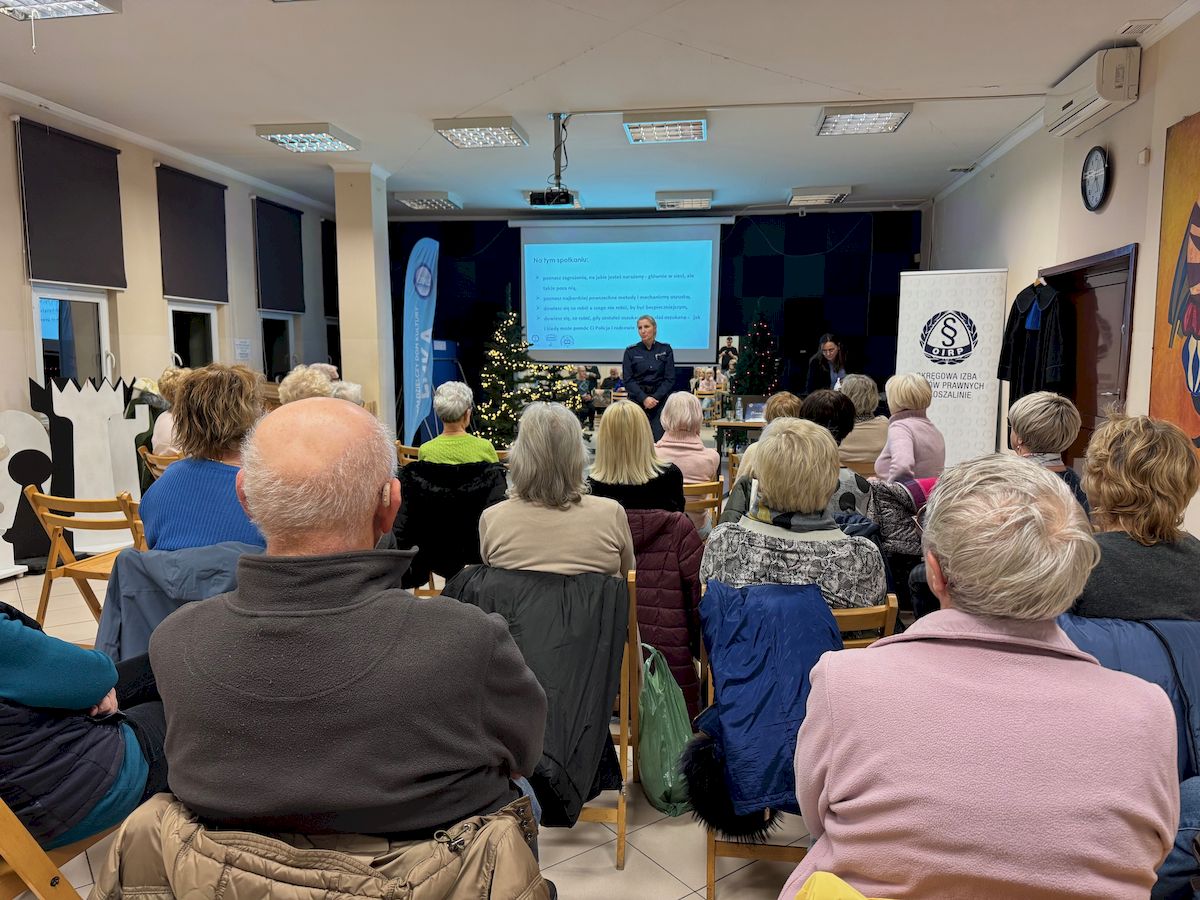 Funkcjonariusze słupskiej komendy regularnie prowadzą działania profilaktyczne i edukacyjne skierowane do seniorów. Jedno z takich spotkań odbyło się wczoraj w Spółdzielczym Domu Kultury „Emka”, a policjanci połączyli siły z przedstawicielami Okręgowej Izby Radców Prawnych w Koszalinie. Podczas zajęć policjantka oraz radca prawny przedstawili zasady bezpiecznych zachowań w kontaktach telefonicznych, bankowych i internetowych. Funkcjonariusze szczegółowo omawiali najczęściej stosowane przez przestępców metody działania oraz tłumaczyli, jak rozpoznać manipulację oraz gdzie szukać pomocy.
