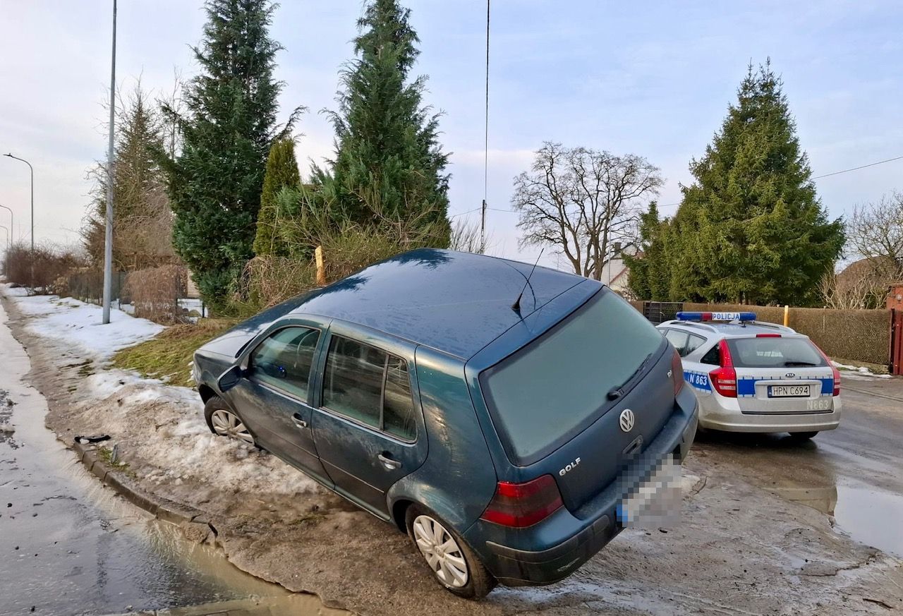 W piątek rano policjanci słupskiej drogówki podjęli próbę zatrzymania do kontroli Volkswagena. Funkcjonariusze włączyli sygnały świetlne i dźwiękowe, jednak mężczyzna zamiast się zatrzymać przyspieszył i rozpoczął ucieczkę. 26-latek zjechał z głównej drogi i próbował zgubić policjantów, jadąc drogami leśnymi i gruntowymi. Funkcjonariusze stracili go z pola widzenia, a po chwili w jednej z miejscowości zobaczyli Volkswagena, który stał wbity w skarpę i część ogrodzenia. W samochodzie znajdowały się żona oraz 5-letnia córka mężczyzny, które ten zostawił i uciekł. Mężczyzna uciekając przed policjantami naraził żonę oraz dziecko, przewożone bez fotelika, na niebezpieczeństwo.