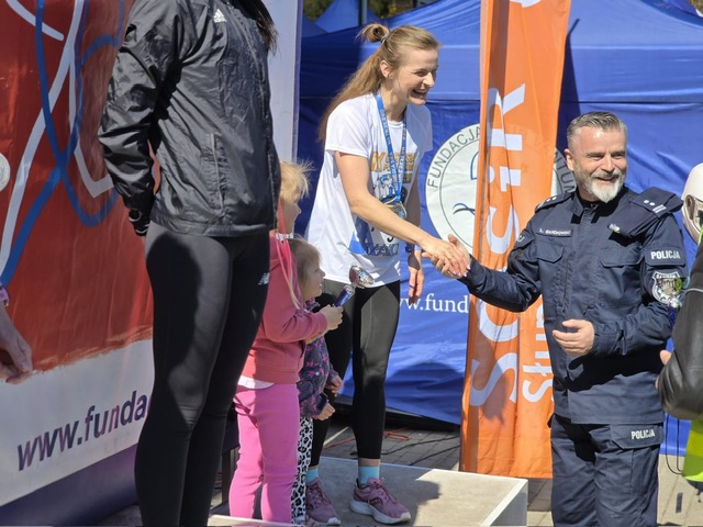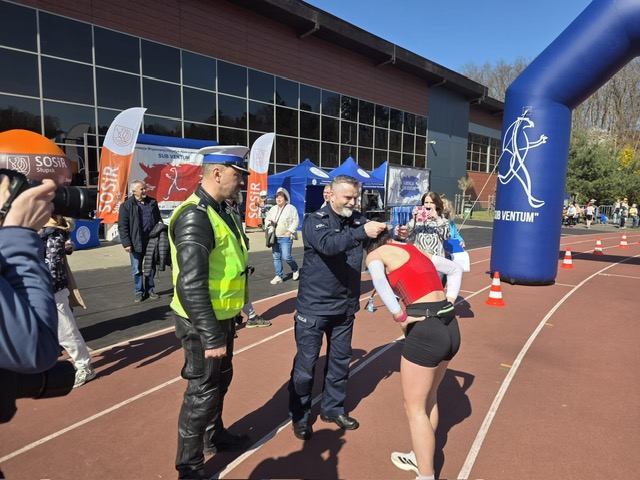 Każdy z uczestników na mecie otrzymał z rąk Komendanta Miejskiego Policji w Słupsku mł. Insp. Leszka Głuchowskiego pamiątkowy medal, a zwycięzcy poszczególnych kategorii otrzymali puchary.